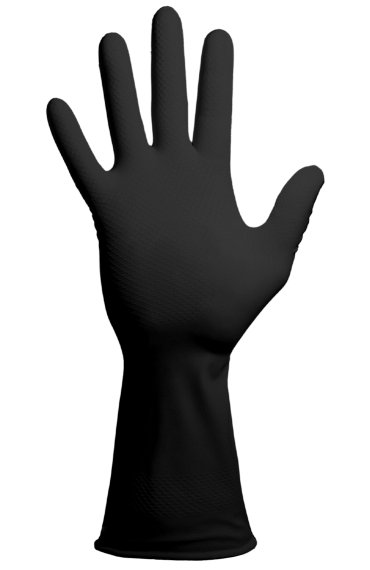Многоразовые химостойкие перчатки из латекса с рифленой ладонной частью. Манжета раструб. КЩС - 2. Стойкость к химическому воздействию водных растворов кислот и щелочей средних и высоких концентраций, органических растворителей, продуктов нефтепереработки (масла, бензин, керосин) и других веществ на углеродной основе. Защита от общепроизводственных загрязнений. Сохраняют тактильную чувствительность рук. Рифленая поверхность ладони обеспечивает хороший захват на сухих и промасленных поверхностях. Край манжеты может быть с адгезивной полосой (для лучшего сцепления с защитной одеждой) прямым обрезом или с валиком (для предотвращения затекания жидкостей). По верху манжеты армирование (ребра жесткости) для исключения сползания манжеты. Водонепроницаемы. Анатомическая форма перчатки (повторяет форму руки).