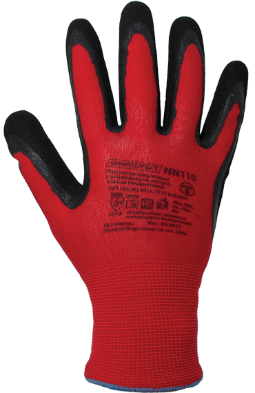 Перчатки нейлоновые бесшовные повышенной прочности со вспененным нитриловым покрытием, цвет красный/черный ArmProtect NN110 р.11 (Азбука Защиты) 4631161388247