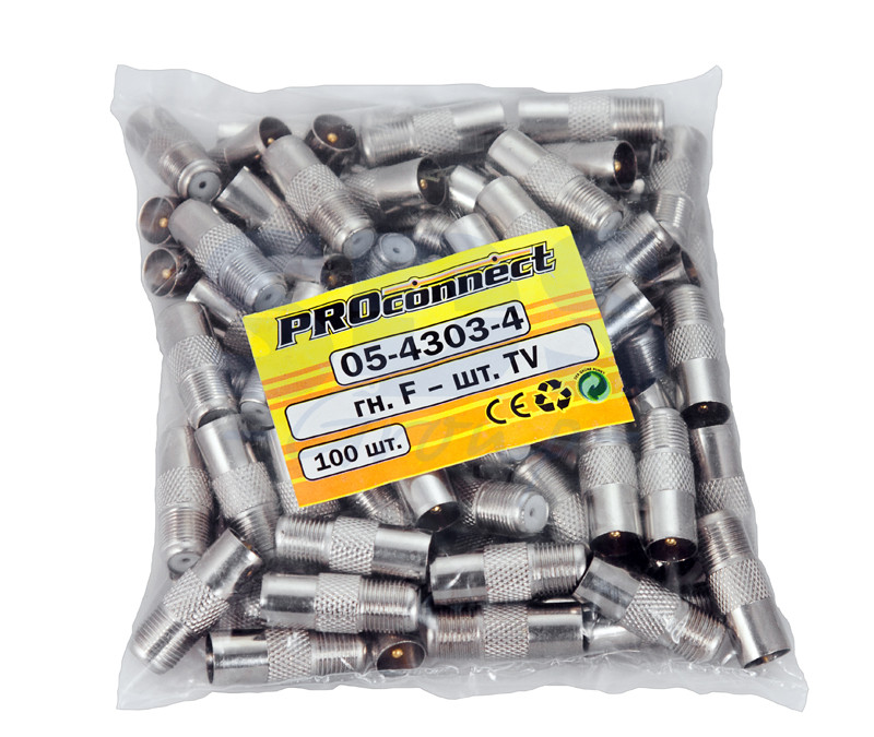 Полное описание товара Переходник гнездо F – штекер ТВ ZnNi (ProConnect) 05-4303-4