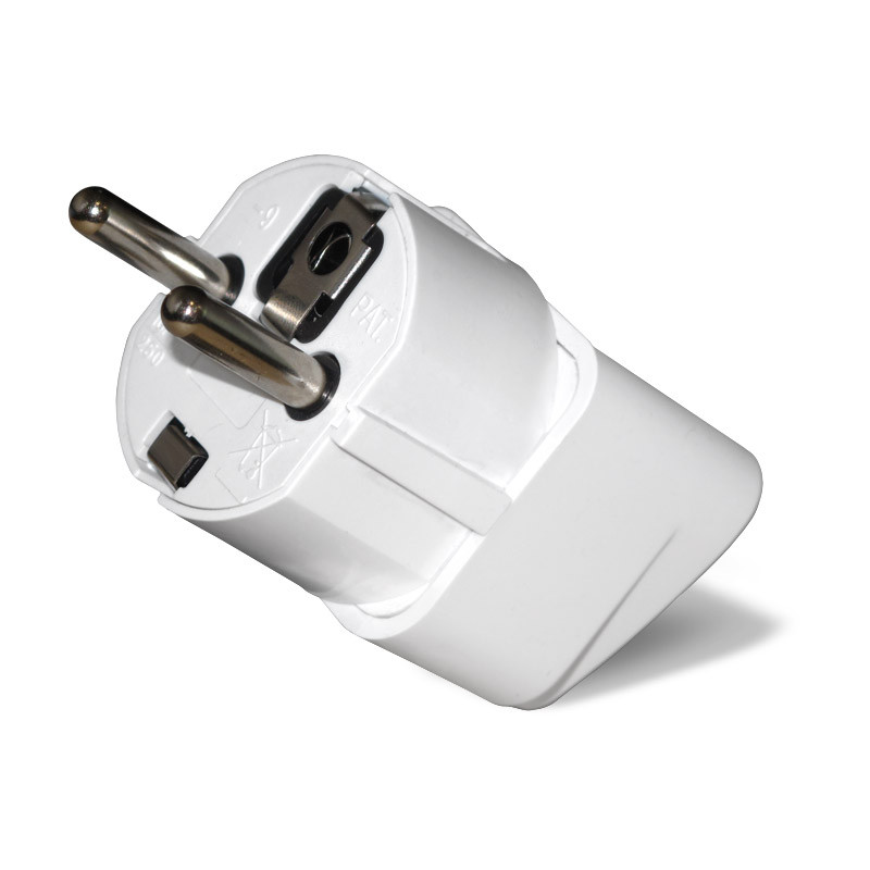 Адаптер-переходник с заземлением 16А - электроустановочный аксессуар, устройство подключения вилки вида ''евро'' к стандартной сети (традиционному разъему розетки). Изготовлен из пластика, белый. Для одиночной розетки.