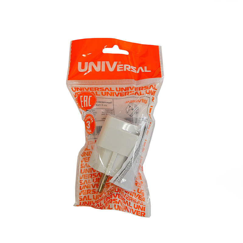Переходник универсальный с заземлением белый 16А 250В (UNIVersal) 1186