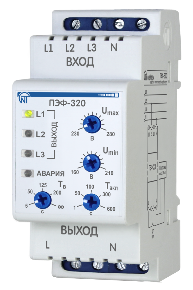 Переключатель фаз ПЭФ-320 16А на DIN-рейку (Новатек-Электро) 3425601320