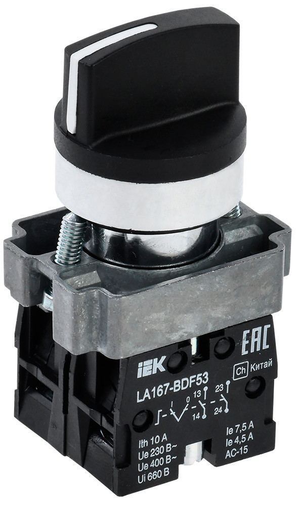 Полное описание товара Переключатель LA167-BDF53 3 полож. 2з черный (IEK) BSW20-BDF53-4-24-67-3-K02