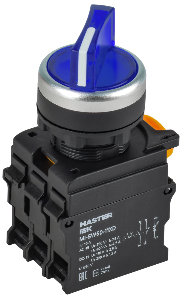 Переключатель с подсв. 2 полож. 1NO+1NC синий MASTER (IEK) MI-SW60-11XD-3-14-2-K07