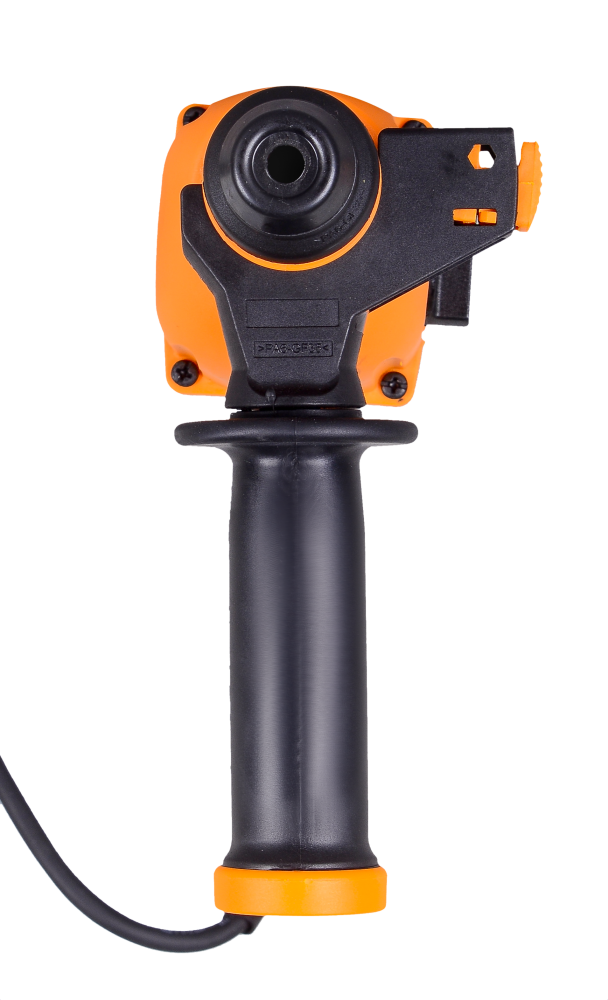 Перфоратор - сверлильная машина, предназначенная для ударного сверления в кирпиче, бетоне и каменной породе, штробления бетонных стен и стен из других материалов, а также для сверления древесины, металлов, керамики и синтетических материалов в режиме работы без удара. Принцип работы основан на тяге от электрического двигателя, который питается от сети 220-230 В. Двигатель через пневматический ударный механизм создает ударный импульс, который передается на патрон, в который зажимается оснастка (буры, сверла и прочее). Особая конструкция ударного механизма обеспечивает значительно большую силу удара, по сравнению с ударными дрелями. Такое усилие позволяет без труда проделывать отверстия даже в очень твердом бетоне.