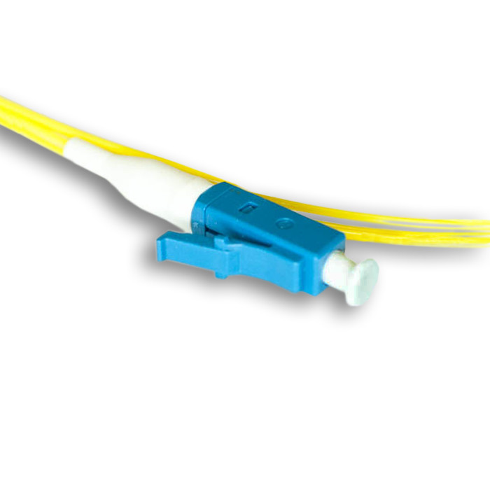 Пигтейл – отрезок оптоволоконного кабеля в буферном покрытии диаметром 0.9 мм, оконеченный с одной стороны оптическим коннектором. Второй его конец предназначен для сращивания с оптическим волокном другого оптического кабеля. Сращивание происходит при помощи сварки или механических неразъемных соединений. Пигтейл оконцован коннектором типа LC c прочным термостойким пластиковым корпусом. Полировка коннектора – UPC. Механизм фиксации – защелка. Основные характеристики -
