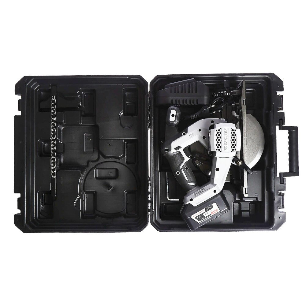Профессиональная аккумуляторная дисковая пила для поперечного, продольного и комбинированного распиливания древесины, комбинированных материалов - фанера, ДСП, ОСП, и т.п. c вентильным бесщеточным приводом. Пила оснащена Li-ion слайдерным аккумуляторным блоком платформы АПИ. Использование вентильного двигателя позволило получить энергетические характеристики машины, значительно превосходящие характеристики не только машин с коллекторным приводом, но и сетевых аналогов, за счет более высокого КПД (выше на 30 процентов). Это позволяет выполнять больше работы на одном заряде и таким образом экономить режим работы аккумуляторного блока.