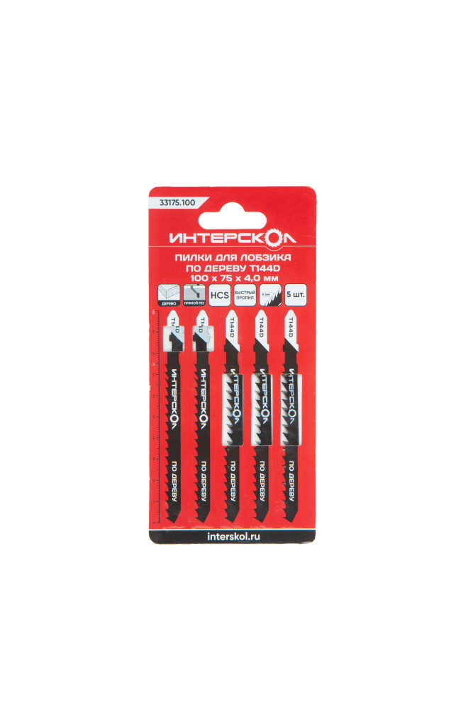 Полное описание товара Пилки для лобзика по дереву T144D 100х75х4,0 (5шт) (Интерскол) 33175.100