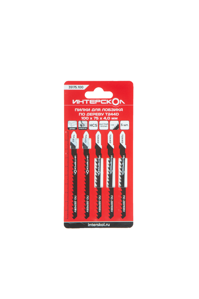 Полное описание товара Пилки для лобзика по дереву T244D 100х75х4,0, криволинейный рез (5шт) (Интерскол) 35175.100