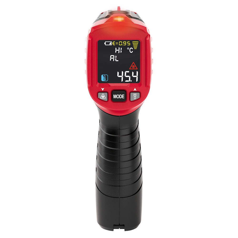 - Преимущества: лазерное прицеливание на объект|оптимальное оптическое разрешение|крупные цифры и дисплей с подсветкой|сигнализация при превышении граничных значений|настраиваемый коэффициент излучения|компактные размеры и небольшой вес.