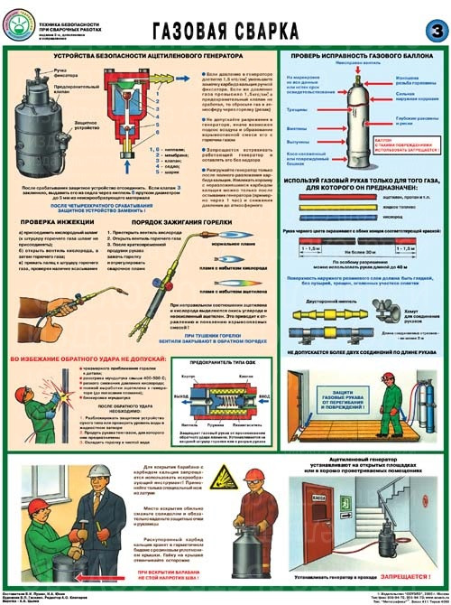 Приобрести плакаты Техника безопасности сварочных работ (5 листов, формат А2+, 465х610 мм, ламинация) можно, составив заявку на сайте нашего интернет-магазина.Изделия описывают безопасные методы работы с ацетиленовым генератором, правила соединения газовых рукавов и их использование по назначению.