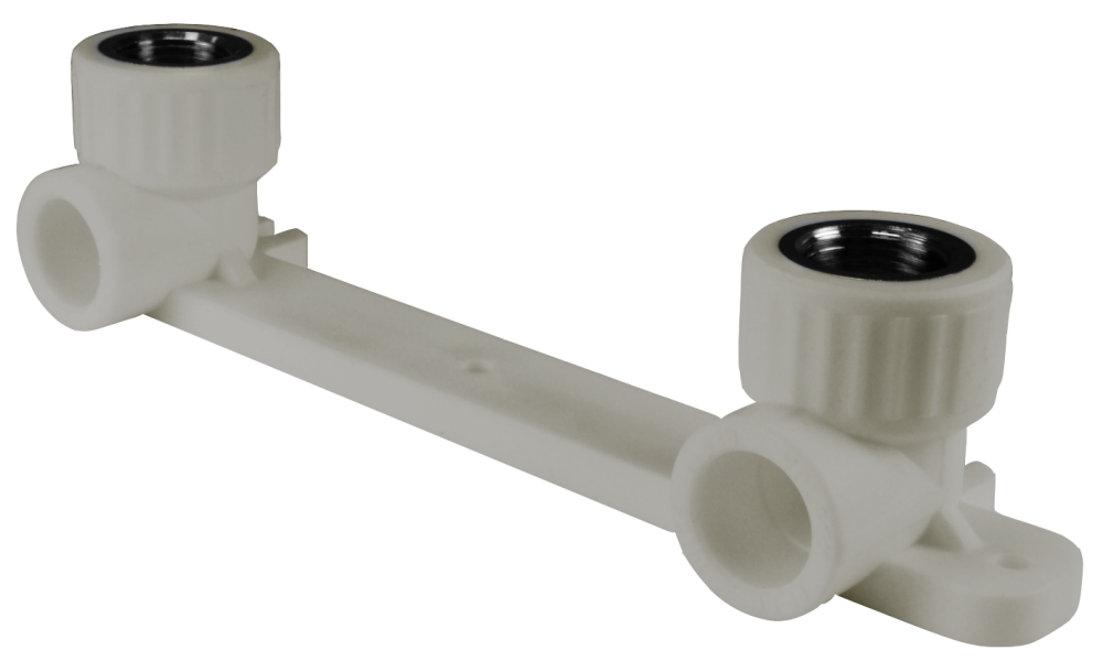 Комбинированный полипропиленовый фитинг, Используется для монтажа к трубопроводу и установки смесителя непосредственно на стене. Латунные части производятся методом горячего штампования, пластиковые - методом литья под давлением.