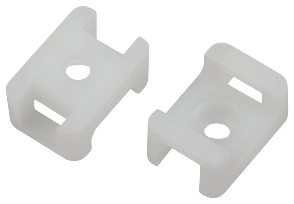 Площадки под хомуты ЭРА с монтажным отверстием предназначены для монтажа кабельных стяжек к различным поверхностям при помощи винта или самореза. Конструкция изделия позволяет легко и удобно выполнить как временную, так и постоянную организацию кабельной проводки. Также площадку для крепления стяжки используют для закрепления других легких предметов. Площадка выполнена из нейлона и оснащена специальным отверстием под хомут. Площадка имеет жесткую фиксацию, что увеличивает нагружаемую способность и позволяет крепить несколько проводников. На корпусе имеется углубление под шляпку винта. Материал: Полиамид 6 не поддерживает горение, не содержит галогенов по UL94V2. Устойчивый к старению, коррозии, воздействию солей, ультрафиолета, кислот, щелочей, спирта, бензина и масел.