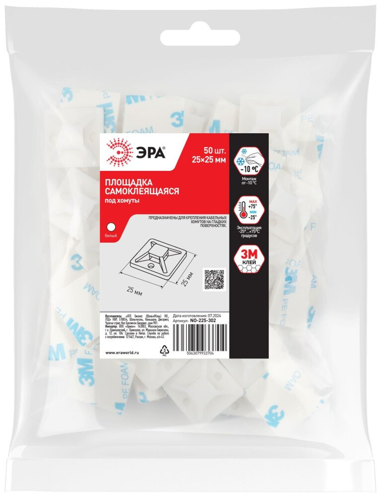 Площадка самоклеящаяся под хомуты 25х25 мм белая 50 штук NO-225-302 (ЭРА) Б0066675