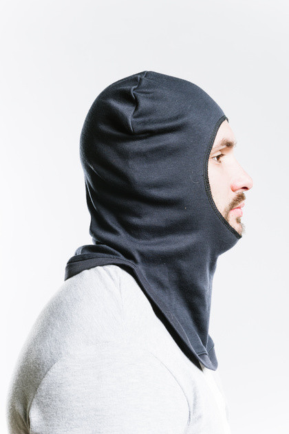 Лицевая и затылочная части изделия выполнены из цельнокроеных деталей. Подшлемник имеет закруглённую вверху форму и круглое отверстие для лица.