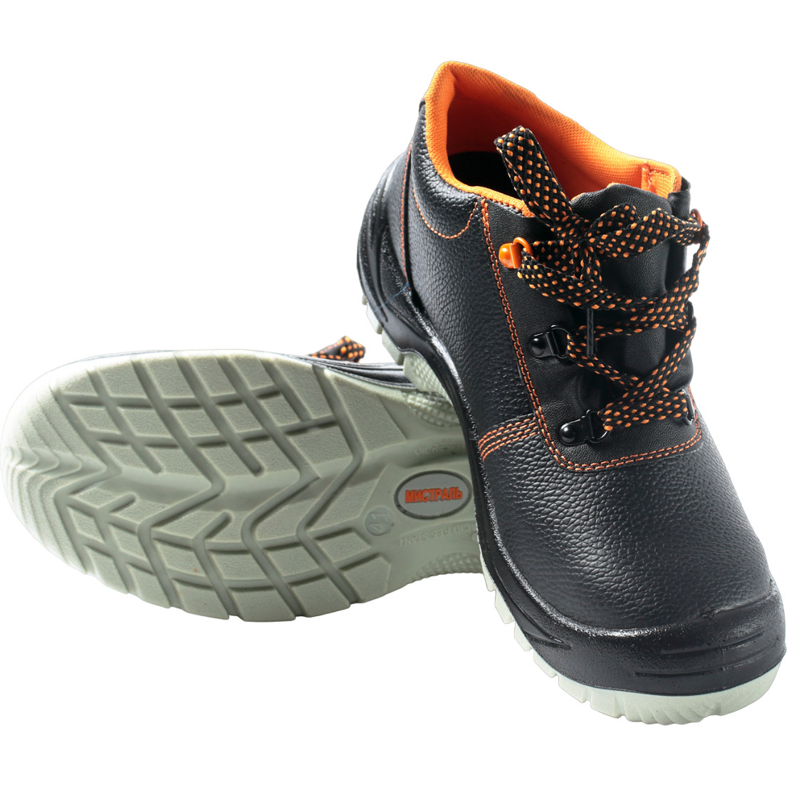 Полуботинки ''Мистраль'', это комфорт, удобство, легкость, защищенность при работе в самых экстремальных отраслях. Ботинки, подойдут для использования в строительстве, ЖКХ, нефтегазовой, горнодобывающей, химической промышленности, агропромышленном комплексе, металлургии и многих других. Обувь изготовлена методом прямого литья. В зависимости от комплектации и маркировочных обозначений, обувь обеспечивает высокую защиту от механических воздействий (от ударов в носочной части 200 Дж), проколов, защищает от контактов с агрессивной средой (нефть, растворов кислот и щелочной концентрации до 20порцентов , общих производственных загрязнений). Материал верха обуви ''Мистраль'' термоустойчивая водоотталкивающая кожа толщиной 1,8 - 2,0 мм.