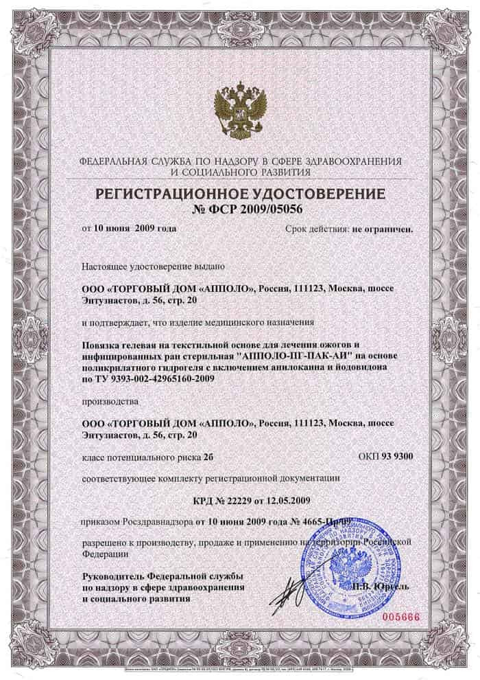 РУ № ФСР 2009/05056 от 10.06.2009г.