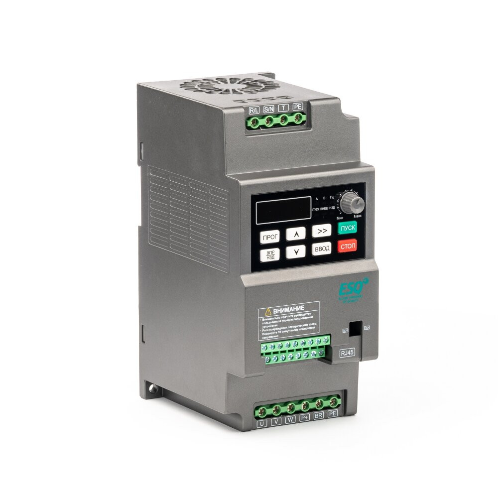 Частотный преобразователь ESQ 230 – это компактный векторный преобразователь частоты для выполнения базовых задач по управлению электроприводом. Предпочтительное применение моделей данной серии - вентиляция и насосы малой мощности, общепромышленные нагрузки (например -станочное и конвейерное оборудование). Выбор конкретной модели определяется номинальными токами электродвигателя, типом нагрузки, режимом работы оборудования (механизма) и способом управления процессом.