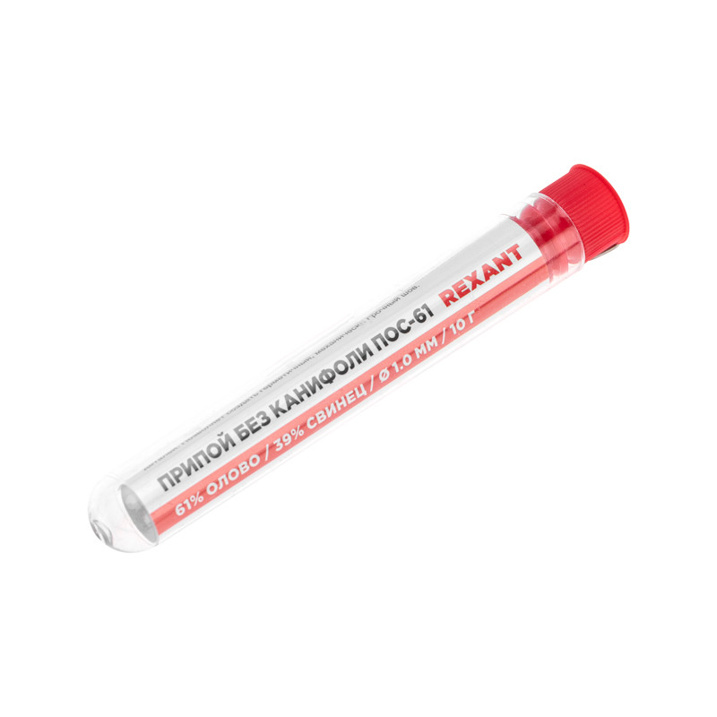 Припой без канифоли ПОС-61, 10 г, 1.0 мм, (олово 61%, свинец 39%) (REXANT) 09-3093