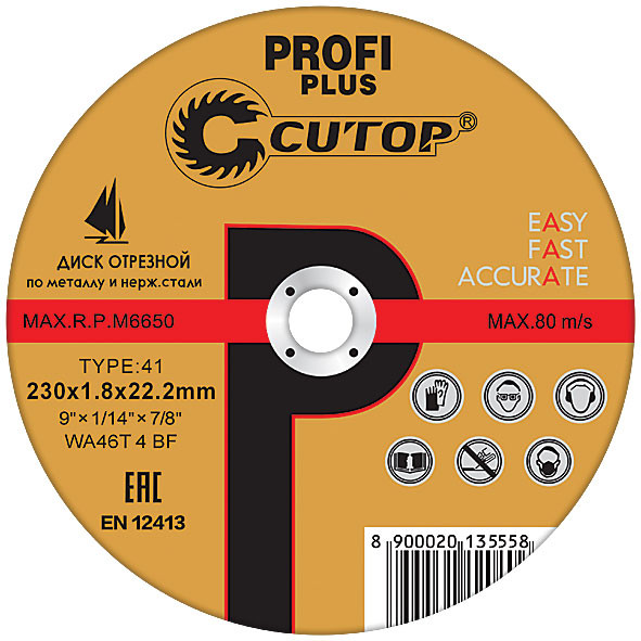 Полное описание товара Профессиональный диск отрезной по металлу и нержавеющей стали Т41-125x1.2x22.2 мм Cutop Profi Plus (CUTOP) 40004т