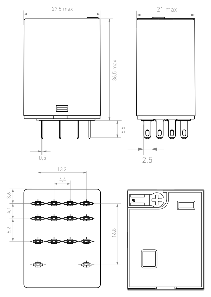 Полное описание товара Промежуточное реле, 4 перекидных контакта 6А, 24В (DC), блокируемая кнопка проверки, светодиод (Релеон) RP434902405