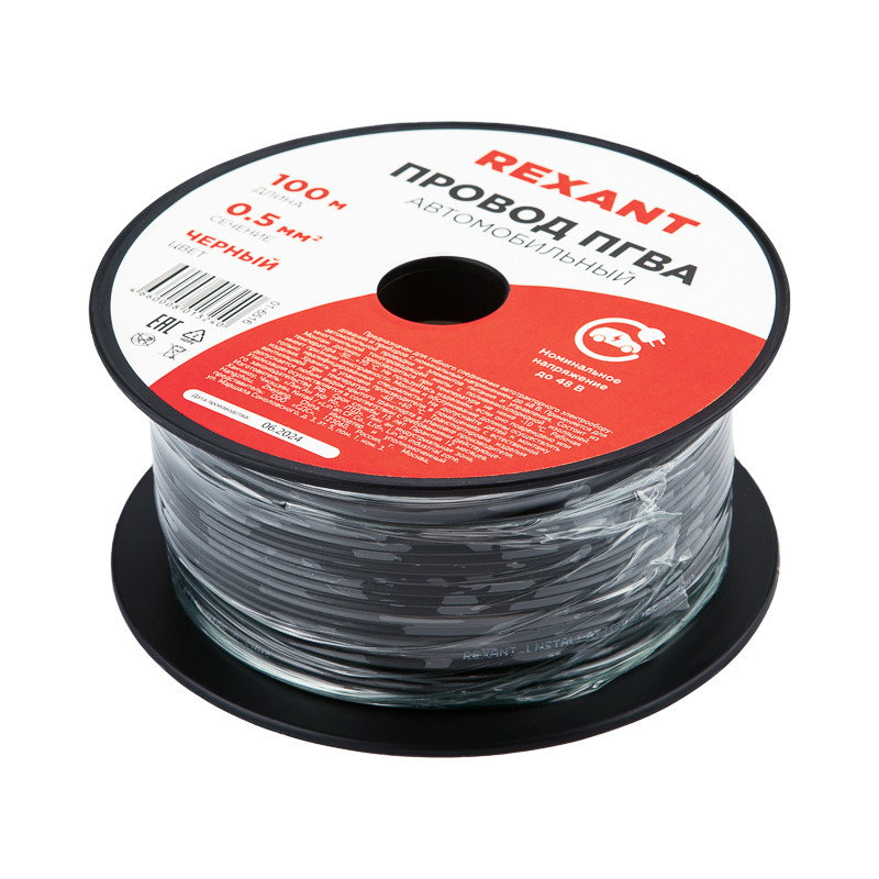 Полное описание товара Провод ПГВА 1х0.50 мм2, черный, бухта 100 м, (REXANT) 01-6516