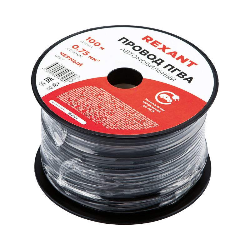 Полное описание товара Провод ПГВА 1х0.75 мм2, черный, бухта 100 м, (REXANT) 01-6506