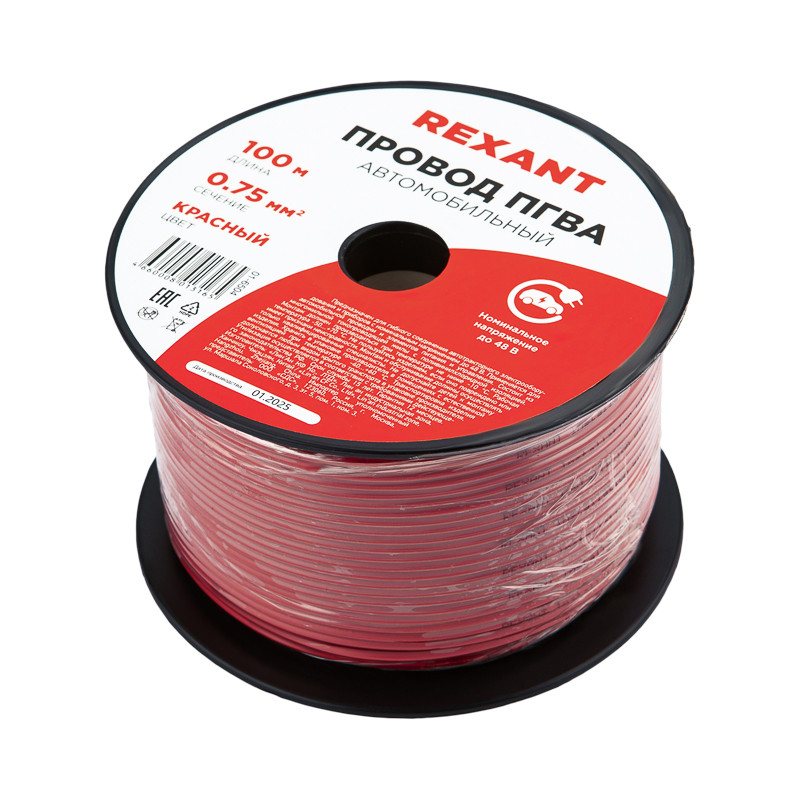 Провод ПГВА REXANT предназначен для гибкого соединения автотракторного электрооборудования и приборов с номинальным напряжением до 48 В, изготавливается для автомобильной проводки и элементов питания и управления. Состоит из многожильной токопроводящей жилы с поливинилхлоридной изоляцией.
