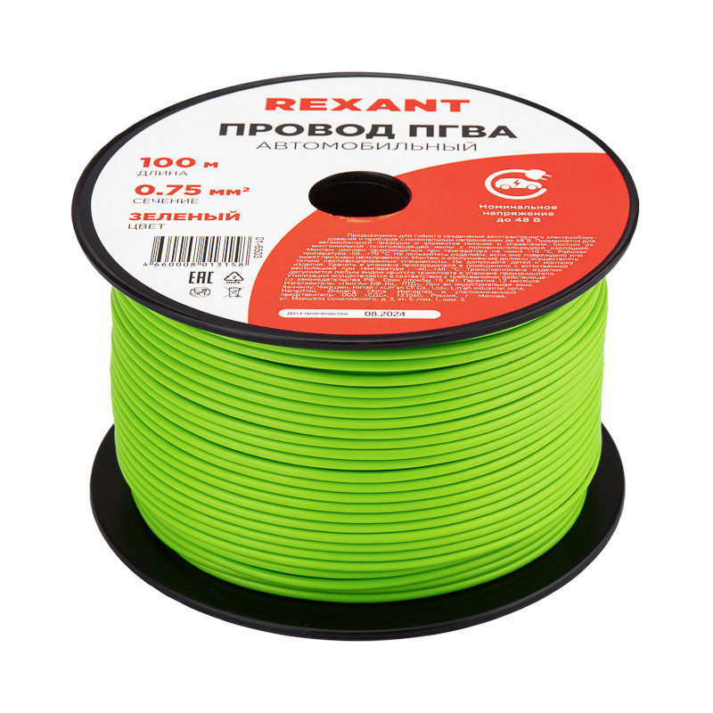 Провод ПГВА REXANT предназначен для гибкого соединения автотракторного электрооборудования и приборов с номинальным напряжением до 48 В, изготавливается для автомобильной проводки и элементов питания и управления. Состоит из многожильной токопроводящей жилы с поливинилхлоридной изоляцией.