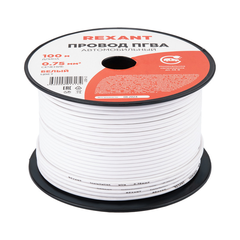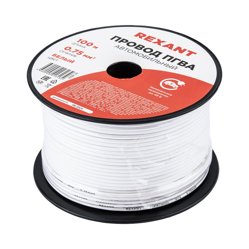 Провод ПГВА 1х0,75мм2, белый, 100 м (REXANT) 01-6501