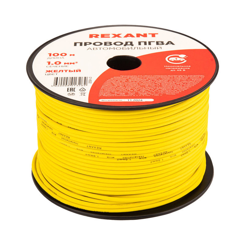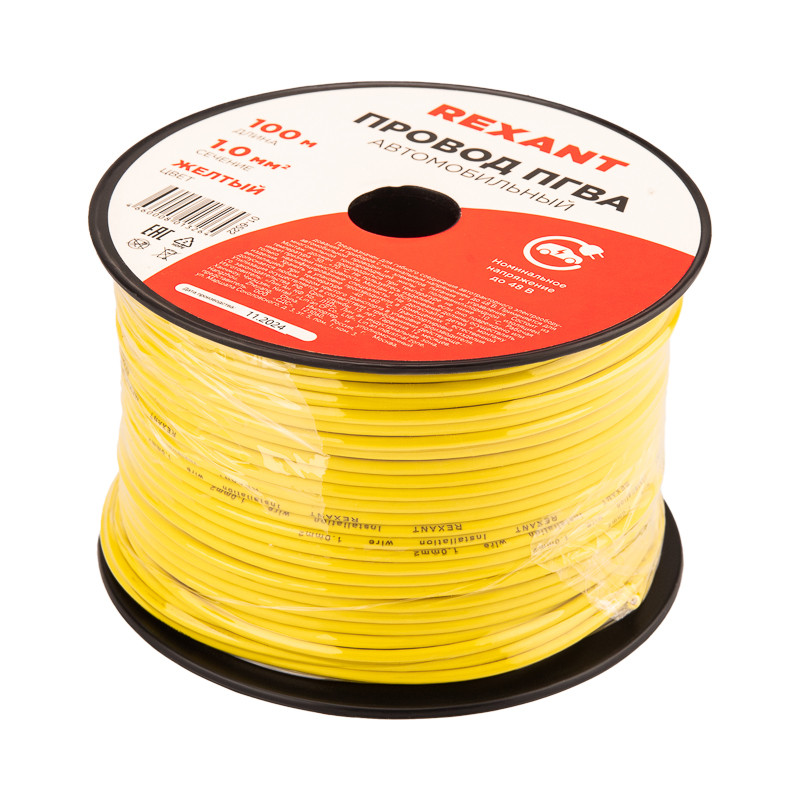 Провод ПГВА 1х1.00 мм2, желтый, бухта 100 м, (REXANT) 01-6522