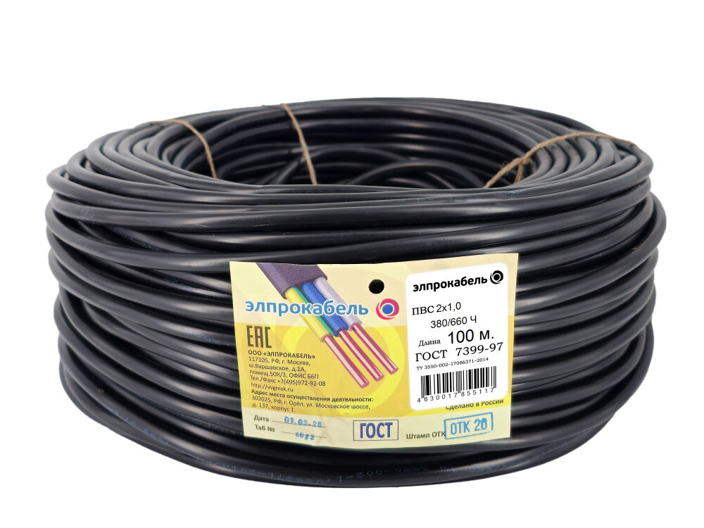 Полное описание товара Провод ПВС 2х1 Ч 100м ТРТС (Элпрокабель)