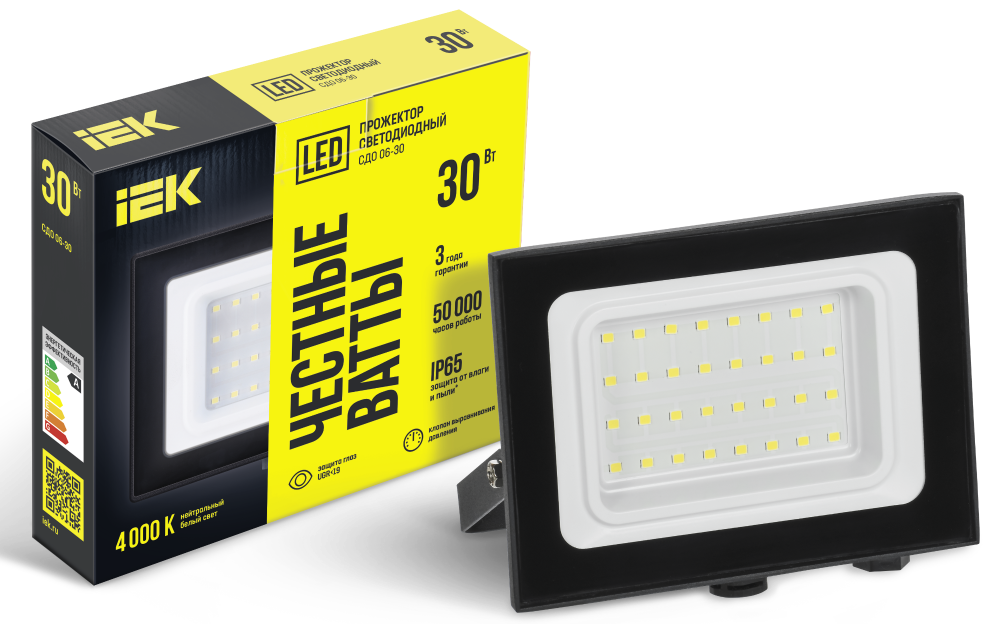 Прожекторы IEK СДО 06 нового поколения стали ещё более удобными и долговечными. 100% мощность. Честные ватты. Отражатель новой формы и рассеиватель из калёного стекла. Прожектор соответствует UGR < 19. Увеличена длина кабеля до 350 мм. Клапан выравнивания внутреннего давления защищает прожектор от попадания влаги (для прожеторов от 30 Вт). Монтажная скоба с изогнутым основанием для установки на стену. Влагозащищённая кабельная муфта, встроенная в корпус, позволяет сохранить защиту от пыли и влаги IP65 без дополнительных вспомогательных устройств (для прожекторов мощностью 150 и 200 Вт). Мощность и световой поток 100% соответствуют заявленным на упаковке.