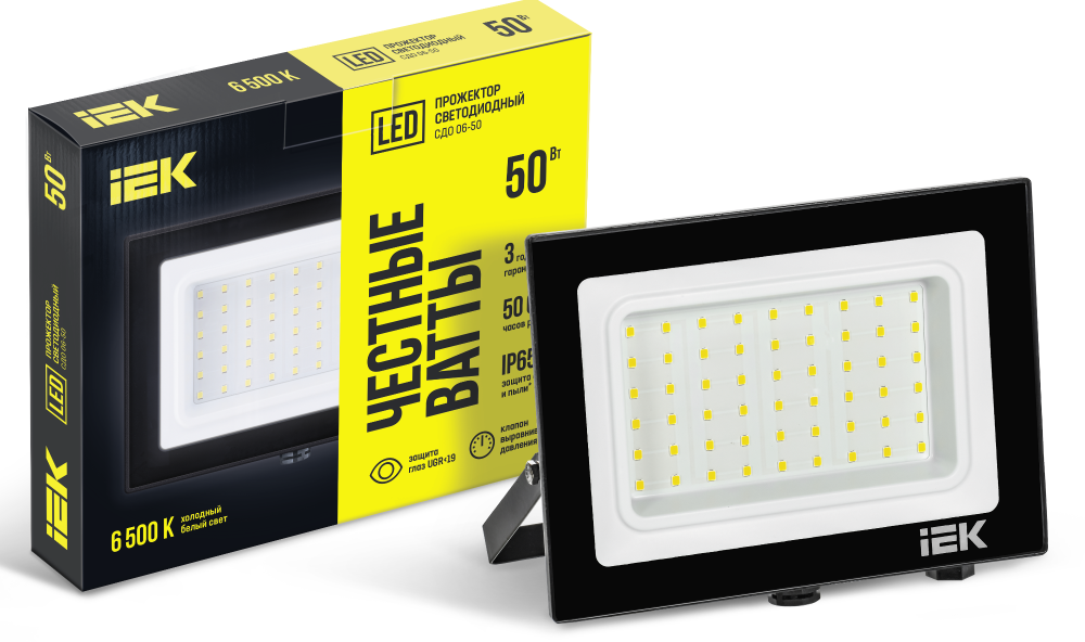 Прожекторы IEK СДО 06 нового поколения стали ещё более удобными и долговечными. 100% мощность. Честные ватты. Отражатель новой формы и рассеиватель из калёного стекла. Прожектор соответствует UGR < 19. Увеличена длина кабеля до 350 мм. Клапан выравнивания внутреннего давления защищает прожектор от попадания влаги (для прожеторов от 30 Вт). Монтажная скоба с изогнутым основанием для установки на стену. Влагозащищённая кабельная муфта, встроенная в корпус, позволяет сохранить защиту от пыли и влаги IP65 без дополнительных вспомогательных устройств (для прожекторов мощностью 150 и 200 Вт). Мощность и световой поток 100% соответствуют заявленным на упаковке.