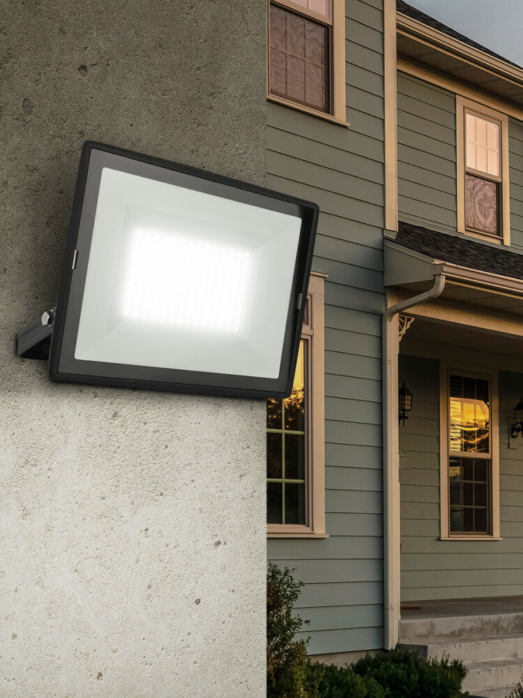 Прожектор светодиодный уличный с высоким световым потоком. Корпус -черный, изготовлен из прочного алюминия, стекло закаленное. Экономичная LED-технология сократит до 90% затрат на электроэнергию. Прожектор устойчив к механическим воздействиям, защищен от дождя и пыли, работает при широком диапазоне температур (от -40 до +45). Отличается простой и быстрой установкой: есть кронштейн специальной формы и регулировочные болты для выбора направления света. Подходит как для внутреннего, так и для наружного применения.