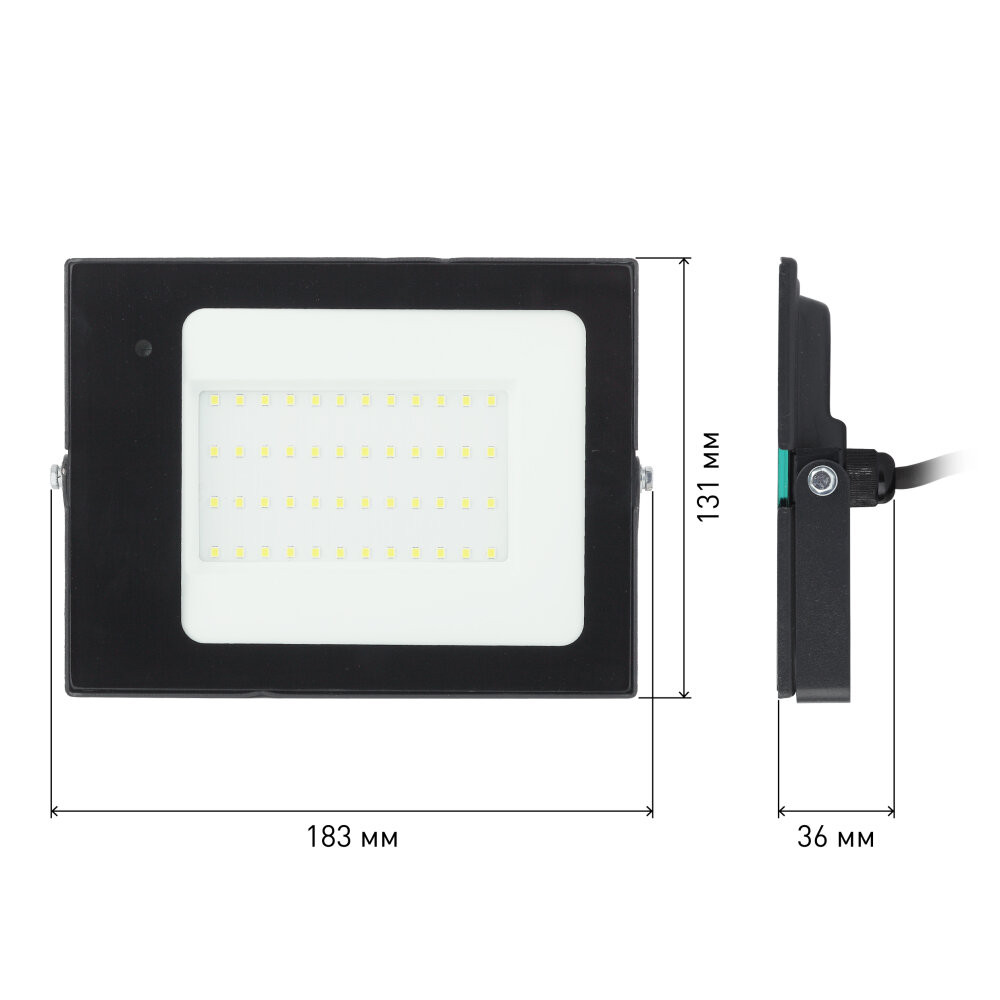 Прожектор светодиодный ДО-50 Вт 6500К 3500 ЛмIP65 200-240В встроенный датчик движения черный 50w холодный корпус LPR-041-1-65K-050 (ЭРА) Б0043576