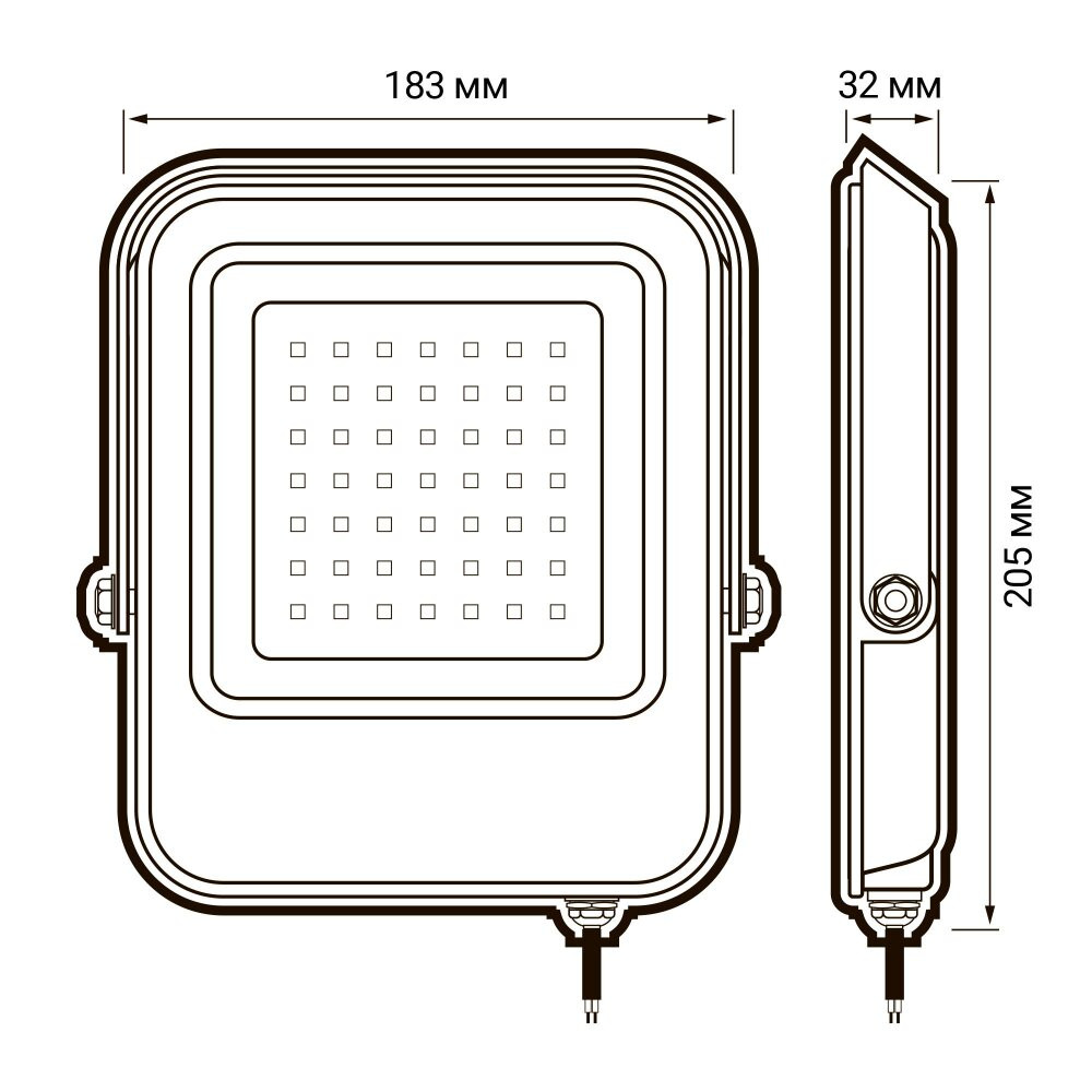 Полное описание товара Прожектор светодиодный ДО-50 Вт 6500К 4500 Лм IP65 PFL-V 185-260В угол светораспределения 100 градусов -40... +50 градусовС литой алюминий индекс Ra>80 (JazzWay) 5039735