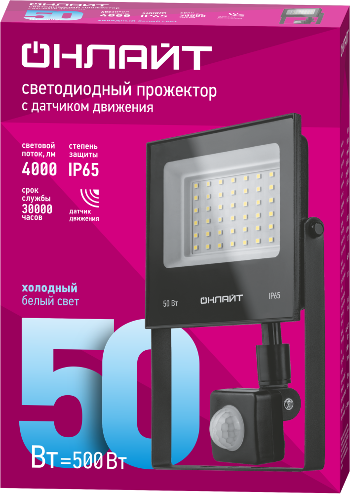 Полное описание товара Прожектор светодиодный ДО-50w с ИК датчиком 6500К 4000Лм IP65 (ОНЛАЙТ) 90687