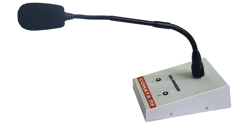 Выносной пульт управления Соната ПУ предназначен для удаленной передачи речевых сообщений в составе системы оповещения на базе прибора Соната К-120М. Обеспечивает управление 2-мя зонами оповещения.