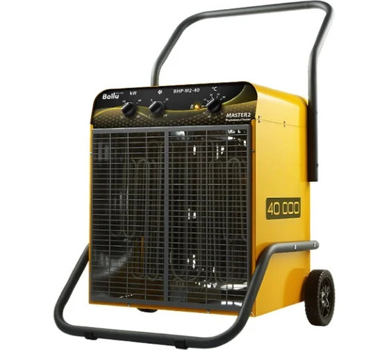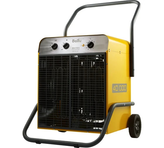 - Преимущества: Самая мощная 40 кВт модель серии Master 2.|Комплектуется трёхскоростным вентилятором, позволяющим регулировать производительность по воздуху.| Поставляется на колёсном шасси для удобного перемещения. |Имеют повышенную степень пылевлагозащиты IP24, что позволяет использовать приборы во влажных помещениях и на открытых площадках без навеса.
