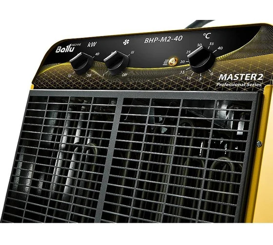 Электрические тепловые пушки BALLU серии Master 2 – новая флагманская серия профессиональных тепловентиляторов для общего обогрева помещений при ремонте, отделочных работах, на стройках и других объектах, где есть потребность в автономном источнике отопления. Тепловентиляторы могут работать в режиме ''без нагрева'', в качестве переносных вентиляторов. Новая панель управления со световой индикацией показывает активный режим нагрева. В приборах применяются электрические компоненты с большим ресурсом работы, высокоточный капиллярный терморегулятор и защитный термостат с функцией блокировки автоматического включения в случае перегрева. Предназначены для непрерывной работы 24/7 в самых суровых условиях эксплуатации, даже при отрицательных температурах до -30С. Новая опора-трансформер с увеличенным ''дорожным просветом'' (тепловентилятор можно ставить на строительный мусор и в грязь) или возможностью наклона.