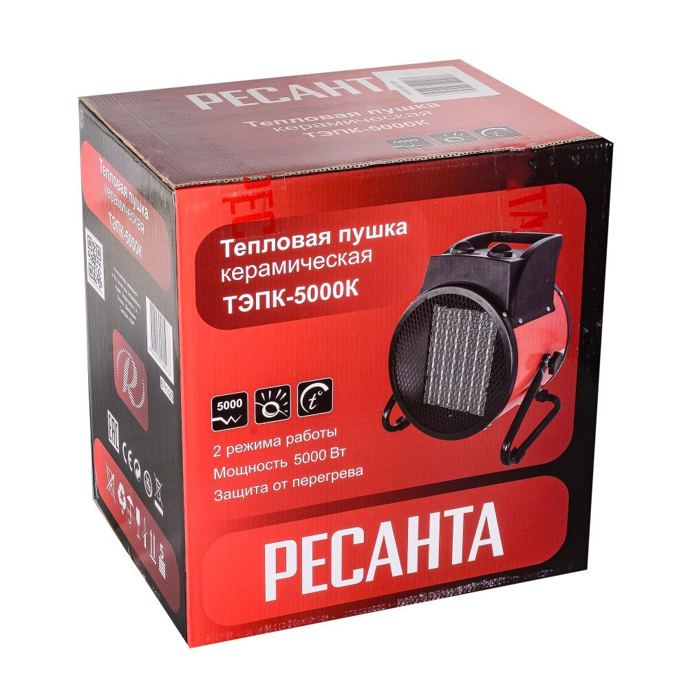Тепловая электрическая пушка Ресанта ТЭПК-5000K керам.нагревательный элемент, круглая 67/1/25 представляет собой компактное оборудование, которое служит для вентиляции и быстрого нагрева воздуха в жилых, производственных помещениях, гаражах, на складах. Модель устанавливается на полу. Благодаря защите от перегрева вероятность преждевременной поломки изделия исключается.