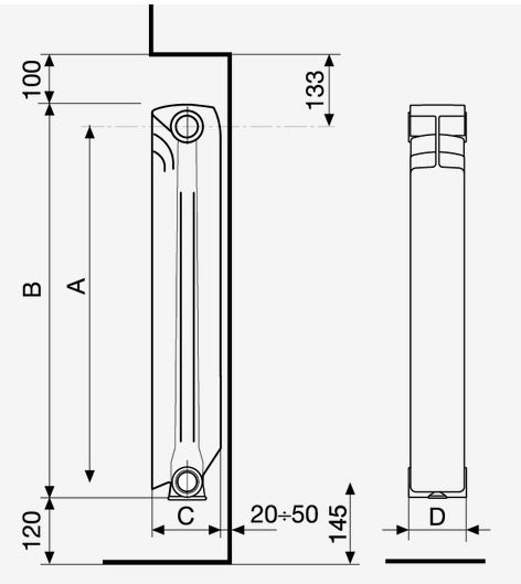 Полное описание товара Радиатор алюминиевый секционный ARDENTE SUPER 500/100/8 боковое подключение 1496Вт (FONDITAL) 8015040521882