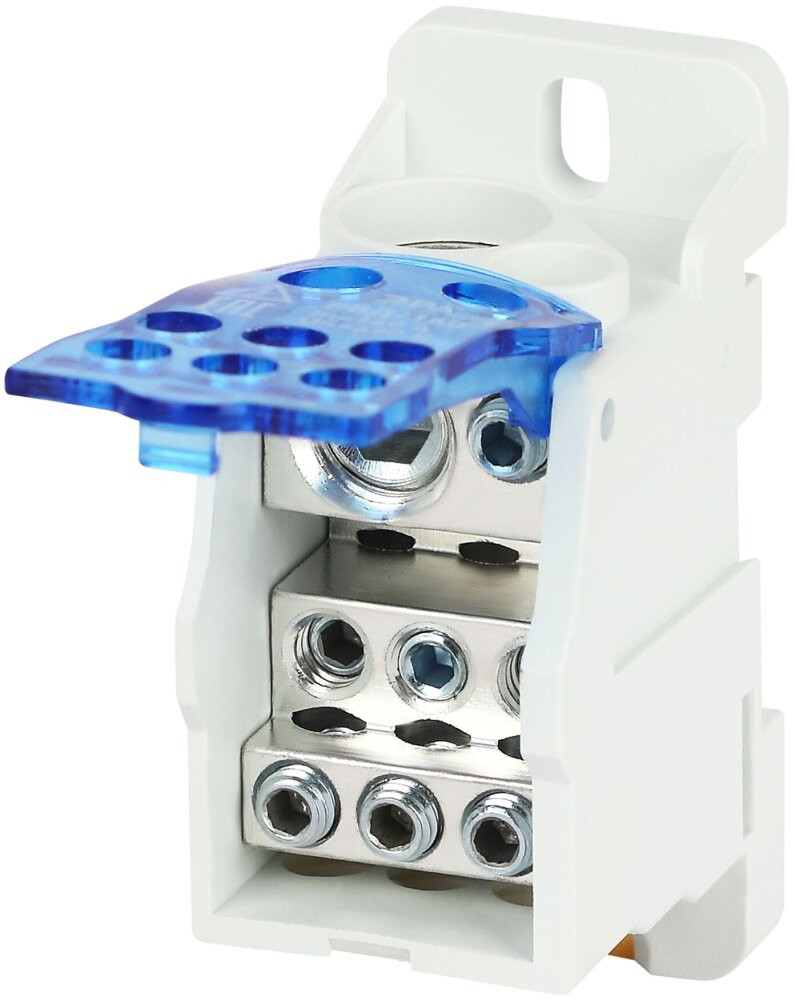 - Преимущества: Возможность монтажа как на DIN-рейку, так и на монтажную плату|Корпус выполнен из негорючих материалов|Доступ к монтажным винтам возможен без открытия крышки распределительного блока