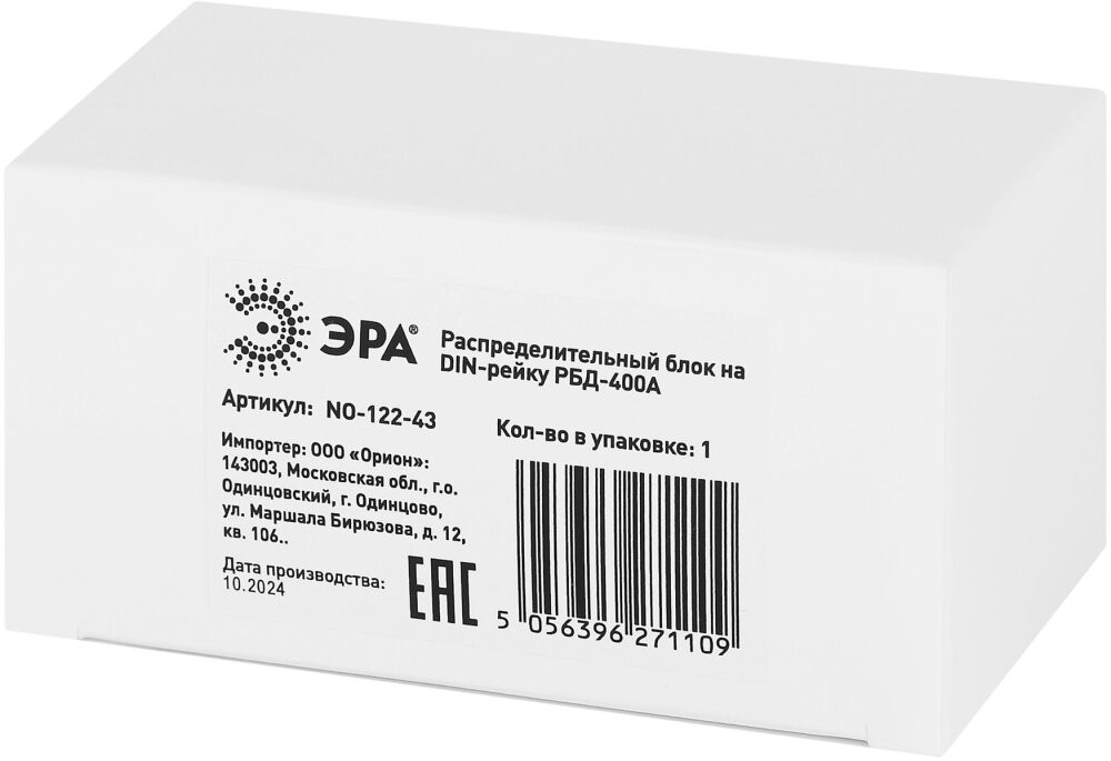 Полное описание товара Распределительный блок на DIN-рейку РБД-400А (ЭРА) Б0051117