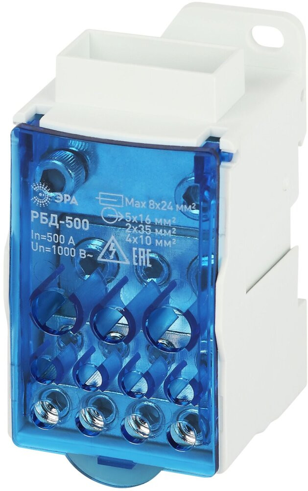 Полное описание товара Распределительный блок на DIN-рейку РБД-500А (ЭРА) Б0051118