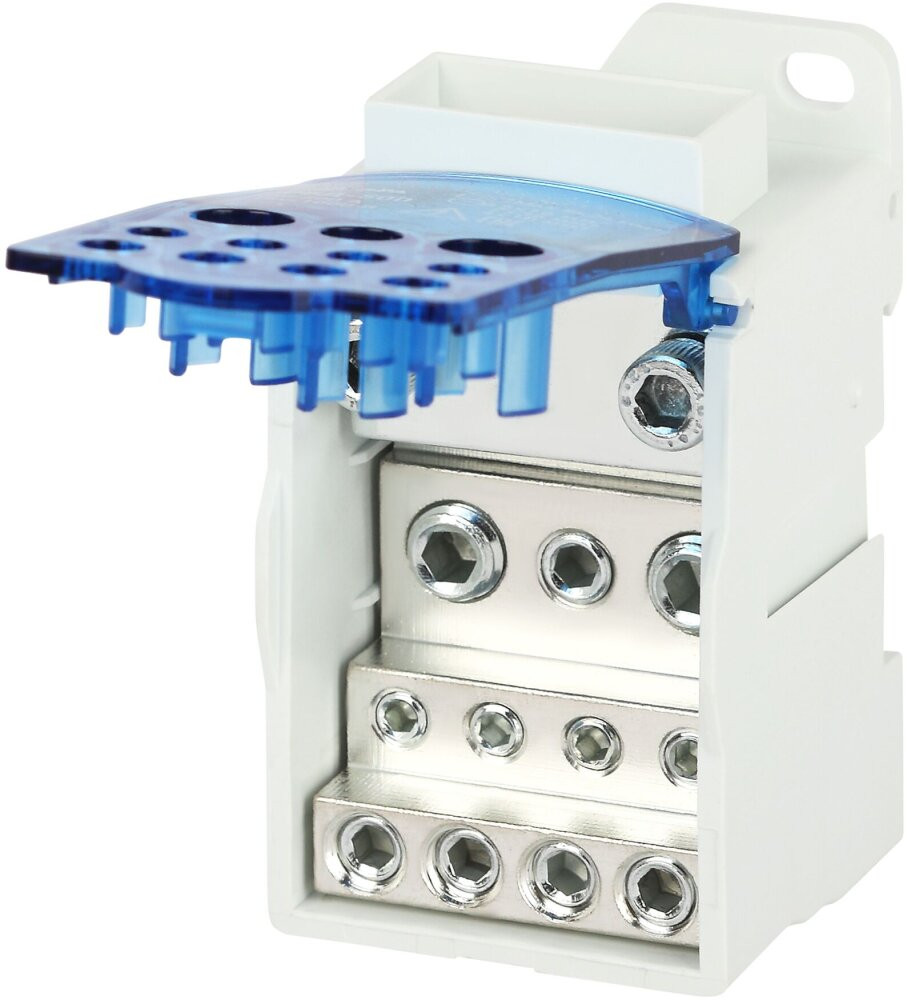 - Преимущества: Возможность монтажа как на DIN-рейку, так и на монтажную плату|Корпус выполнен из негорючих материалов|Доступ к монтажным винтам возможен без открытия крышки распределительного блока