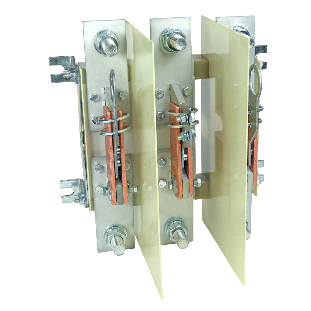 Разъединитель 3 полюсный на номинальный ток 1600 А, где установлена съемная рукоятка, а механическая износостойкость составляет 6300 циклов.
