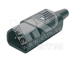 Разъем IEC 60320 C14 на кабель 220В 10А плоские штыревые контакты в пластиковом обрамлении прямой (Hyperline) 47998