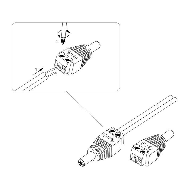 РАЗЪеМ питания штекер 2.1х5.5 с клеммной колодкой PROconnect предназначен для оперативного подключения питания различного оборудования (систем видеонаблюдения, питания зарядных или других бытовых устройств) к источнику питания постоянного тока 12/24В (DC). Такой двухконтактный штекер монтируется на кабель с помощью винтовых зажимов. Никелевое покрытие контактов повышает долговечность Разъема и позволяет применять его в условиях климатических перепадов. Корпус изготовлен из ударопрочного пластика. Монтаж возможно осуществлять с разными типами кабелей ШВВП, комбинированный провод или витая пара. Джек часто используется для замены вышедших из строя Разъемов шнура и подходит к стандартным резервным источникам питания (DC).